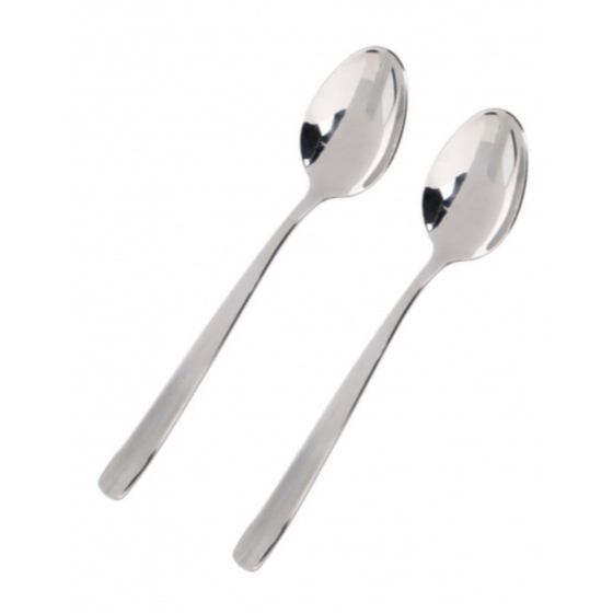 Een mooie aanvulling voor je servies. Twee lepels van roestvrij staal in de kleur chroom. De lepels hebben een lengte van 20,5 centimeter.