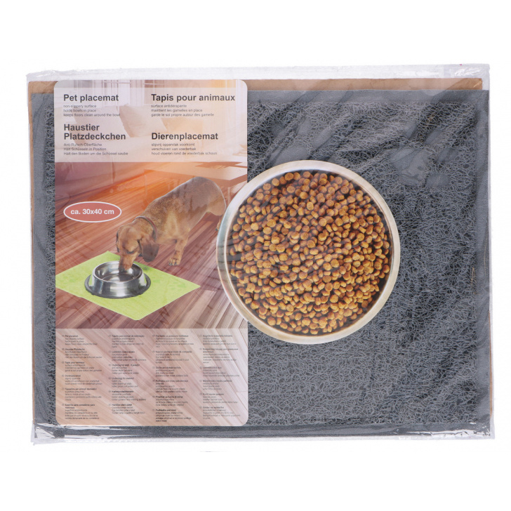Houd je vloer vrij van vuil en bescherm het tegen krassen met deze fijne placemat. De mat voorkomt dat je hond of kat met de voerbak gaat schuiven. Hondenplacemat.