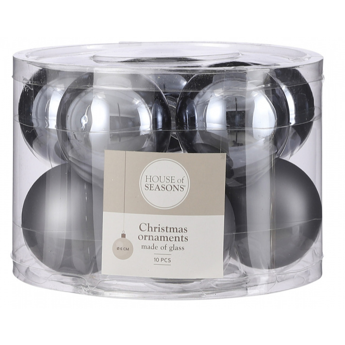 De kerstballen hebben een diameter van zes centimeter en de verpakking bevat tien stuks: vijf glanzende en vijf matte kerstballen.