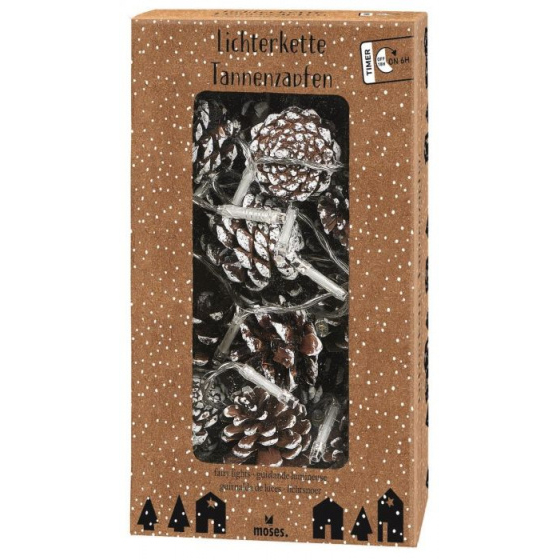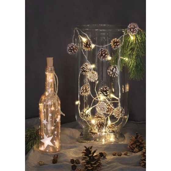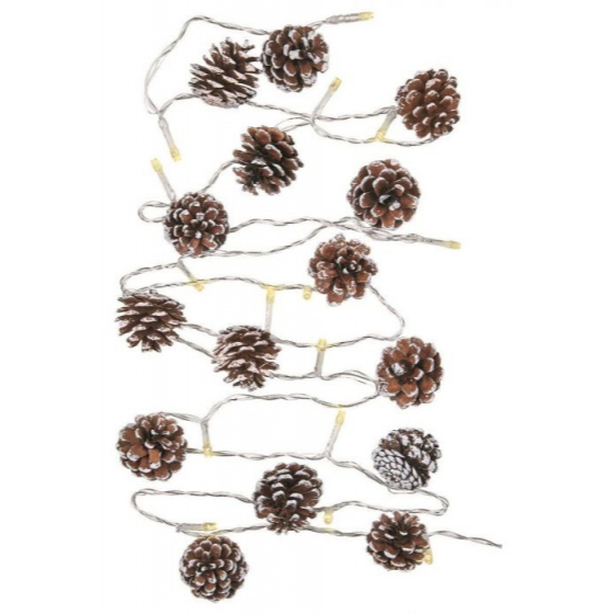 Decoreer je huis met deze lichtsnoer met dennenappels inclusief timer functie. Daardoor kun je de lampjes elke dag om dezelfde tijd aan laten springen en dan blijven de lampjes zo´n 6 uur branden. Inclusief 2xAA batterijen (verwisselbaar).