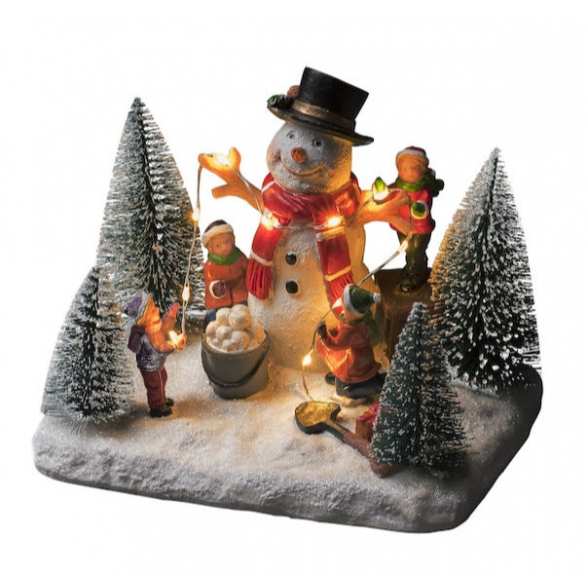 De sneeuwman en de kerstbomen zorgen voor een leuke winterse sfeer op de kast of dressoir.