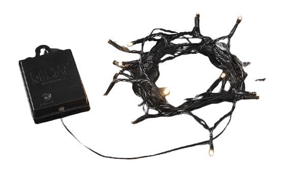 Deze lichtsnoer met 20 led-lichtjes is ideaal om je huis of tuin in een kerstsfeer onder te dompelen. De verlichting werkt op vier AA batterijen (niet inbegrepen) en met de timerfunctie kun je een brandtijd van 6 tot 9 uur instellen.