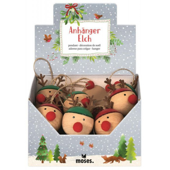 Met deze kersthanger kun je je kerstboom nog mooier en gezelliger maken, met een houten kop van een rendier met gewei als kerstboomhanger.