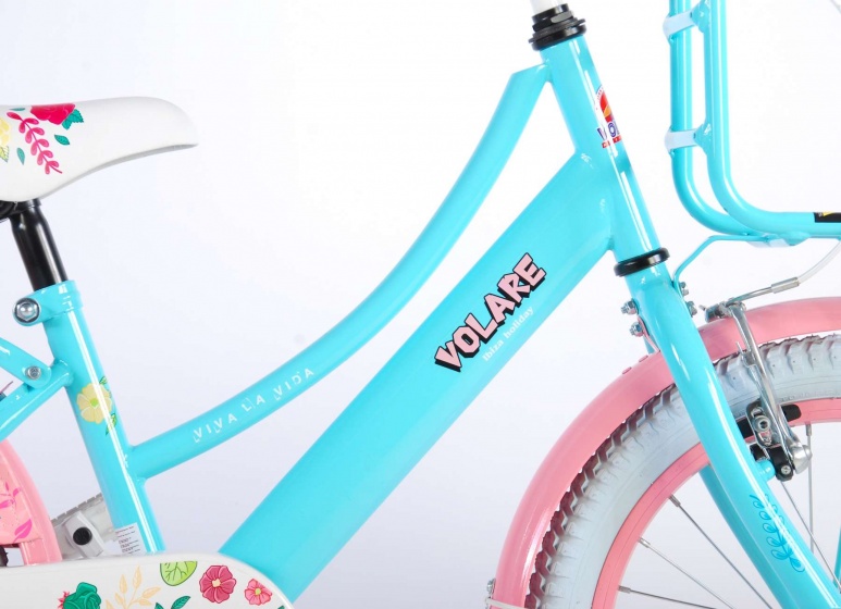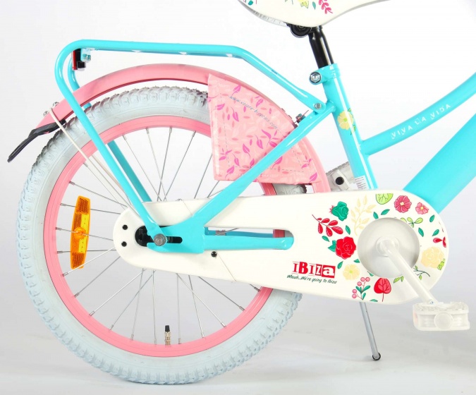Deze vrolijke meisjesfiets van Volare is helemaal in stijl van het Spaanse eiland Ibiza. De kleuren van de kleurrijke hippiemarkten en het prachtige blauwe zeewater zijn verwerkt in de kleurstelling van de fiets. Met de handige voordrager, fietsbel en voor- en terugtraprem ben jij helemaal klaar om de zonsondergang tegemoet te fietsen! Meisjesfiets 18 Inch .