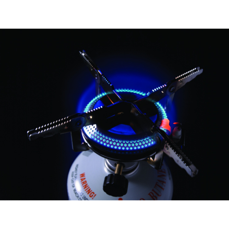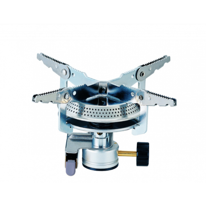 De Kovea Hiker Stove is een lichte en stabiele gasbrander voor op reis. Ideaal tijdens fietsvakanties, meerdaagse trektochten of kampeervakanties. Dankzij het lage gewicht en de compacte pakmaat is de brander eenvoudig mee te nemen in een rugzak of fietstas. De pannendragers kunnen eenvoudig ingevouwen worden waardoor de pakmaat tot een minimum beperkt wordt. De Hiker Stove is voorzien van een piëzo-ontsteking waarmee je, met één druk op de knop, de brander aansteekt.