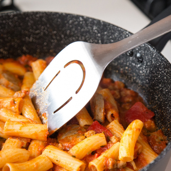 De Cook pannen van Zyliss zijn uitgerust met de geavanceerde RockpearlPlus non-stick technologie, een gecombineerd procédé van oppervlaktebehandeling en antikleefcoating, exclusief samengesteld voor Zyliss door het Zwitserse Ilag. De antikleefcoating is opgebouwd uit 3 lagen en staat garant voor optimale anti-aanbak eigenschappen. Voor het aanbrengen van de coating worden de pannen in gietaluminium onder hoge druk gestraald met metaalpartikels, waardoor een ruw oppervlak ontstaat dat een perfecte en duurzame hechting garandeert. De toplaag van de coating behoudt dit aspect en geeft de binnenzijde van de pan een gestructureerde graniet finish, waardoor olie en vet minder in contact komen met het voedsel in de pan. De pannen hebben een soft touch ergonomische greep voor maximum comfort en controle bij het hanteren. De greep is stevig met rivetten bevestigd. Uitgerust met een inductiebodem, is deze reeks geschikt voor alle warmtebronnen inclusief inductie. De pan is voorzien van een praktisch ophangoog, vaatwasmachinebestendig, en geschikt voor de oven tot 180°C.