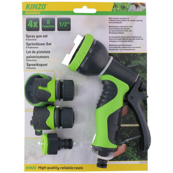 Deze sproeikop voor aan je tuinslang is makkelijk in gebruik. Hij wordt geleverd met verschillende koppelstukken en een tapkraan. Door de acht verschillende standen is de sproeikop multifunctioneel. Je kan hem bijvoorbeeld gebruiken voor het bewateren van je tuin of voor reinigingsklussen. Sproeikop set.