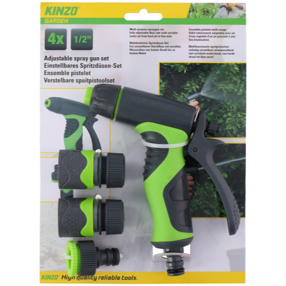 Deze multifunctionele spuitpistoolset heeft een volledig verstelbare stroomsnelheid met variabele waterstraal, van harde straal tot fijne nevel. Zo kun je er je planten mee bewateren maar ook reinigingsklussen mee uitvoeren. Spuitpistool.