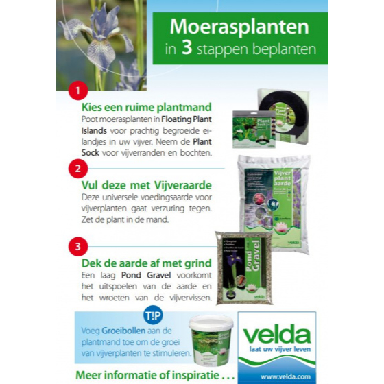 De unieke mix van bestanddelen van deze vijverplantaarde zorgt voor een optimale watercirculatie in de vijver en zuurstofrijk water. De vijverplantaarde kan gebruikt worden in een plantmand, of als bodem voor het biologische evenwicht in de vijver. Het stimuleert de krachtige groei van waterlelies en andere soorten moerasplanten. Om watervertroebeling tegen te gaan is het raadzaam om de aarde af te dekken met gewassen grind of fijnkorrelig substraat.