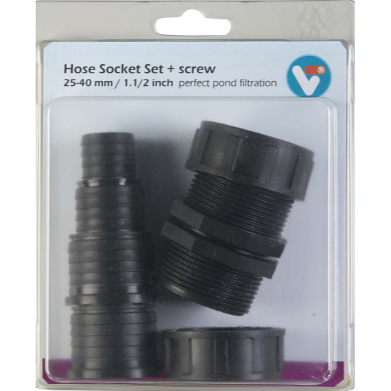 Met de Velda verbindingsset met schroefdraad heb je alles in huis voor het aansluiten van vijverslangen en vijverfilters. Met dit verbindingsstuk kunnen andere onderdelen met buitenschroefdraad worden vastgedraaid. De set bestaat uit vier koppelstukken en twee ringen voor het aansluiten en koppelen van pompen, filters en UV-C apparatuur.