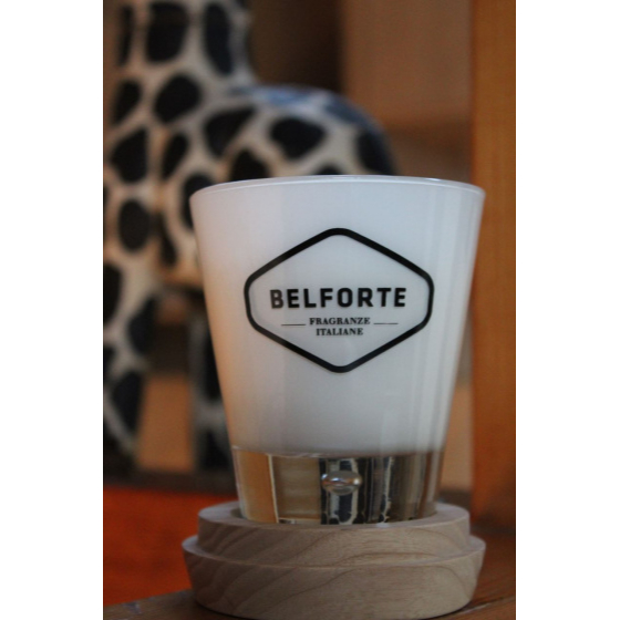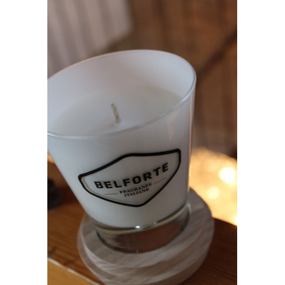 Deze geurkaars van Belforte is een prachtige home decoratie accessoire ontworpen door de Milanese designer Gabriel Weirich. De kaars wordt geleverd in een prachtig glas met essenhouten deksel dat tevens als onderzetter dient. De kaars van natuurlijke wax geeft een heerlijke geur af voor +/- 50 uur en is een geweldig cadeau om te geven op iedere housewarming.