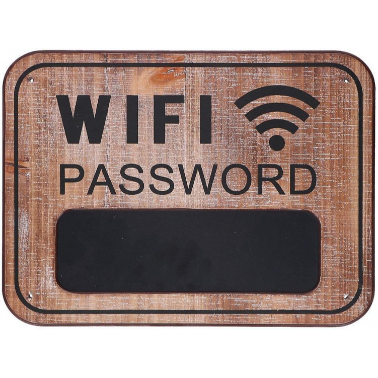 Dit moderne bord is leuk als wanddecoratie, op het blackboard gedeelte kan je je wifi wachtwoord schrijven.