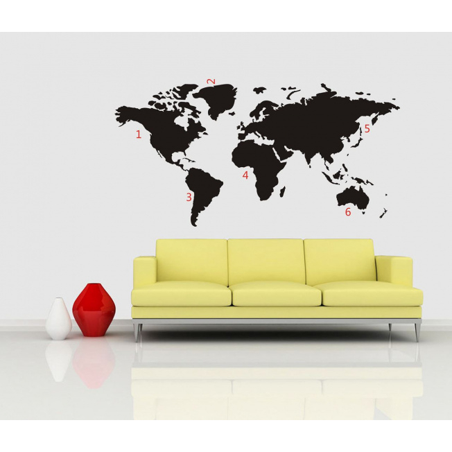 De Wereldkaart Muursticker is een prachtige wanddecoratie voor je woonkamer of kantoor. Een geweldig idee voor een nieuwe woning, liefhebbers van reizen of een ieder die een persoonlijke touch wil geven aan de leefomgeving. De wereldkaart is eenvoudig aan te brengen door gebruik te maken van het meegeleverde transparante sticker vel. Hierdoor is geen lijm nodig, laat het geen rommel achter en heb je geen schilder nodig.